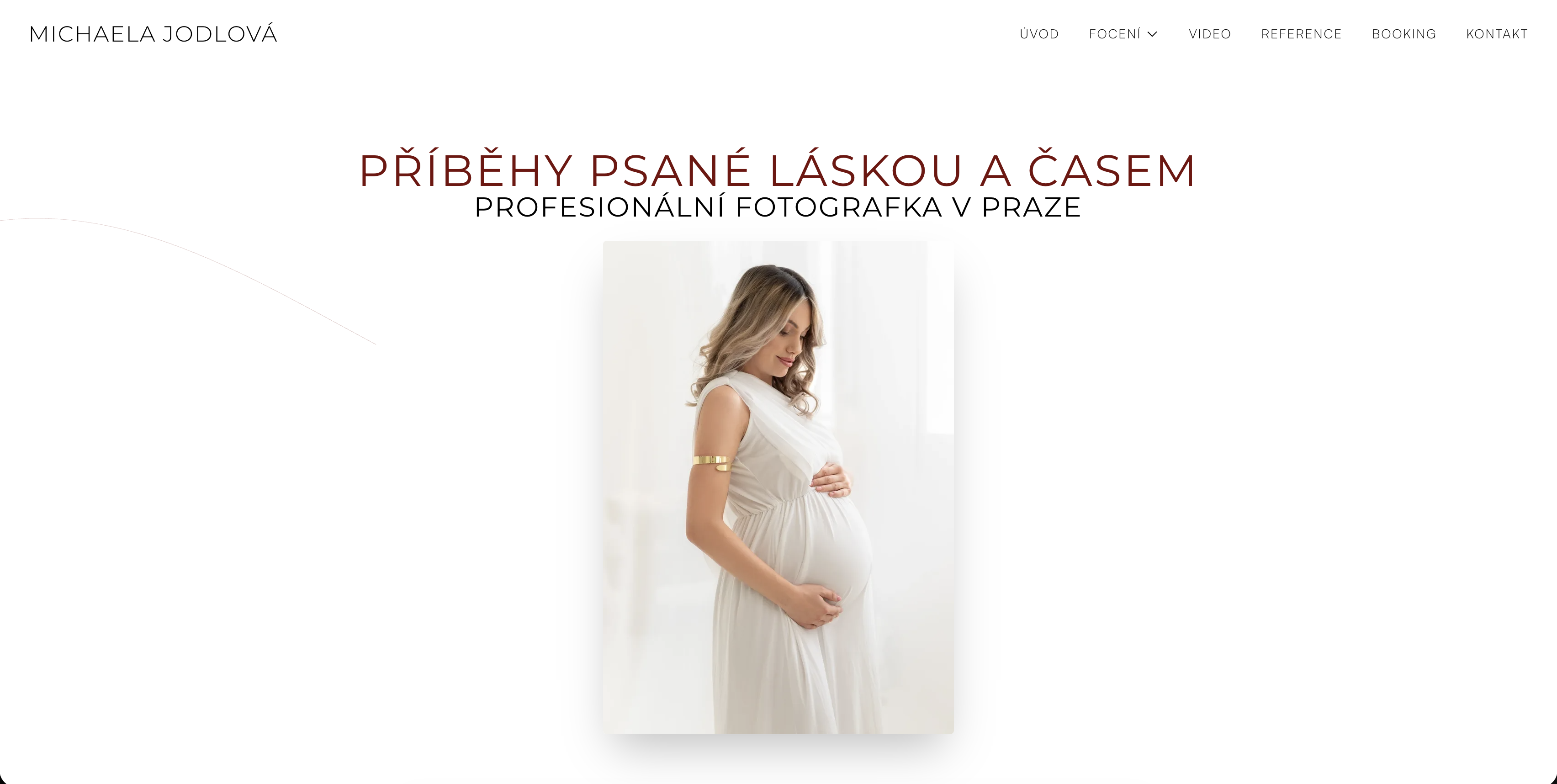 Pro paní Jodlovou, profesionální fotografku z Prahy, jsem vytvořil webové stránky, které jsou minimalistické a elegantní. Web převážně slouží jako online portfolio, ale také jako platforma pro rezervaci fotografických služeb.